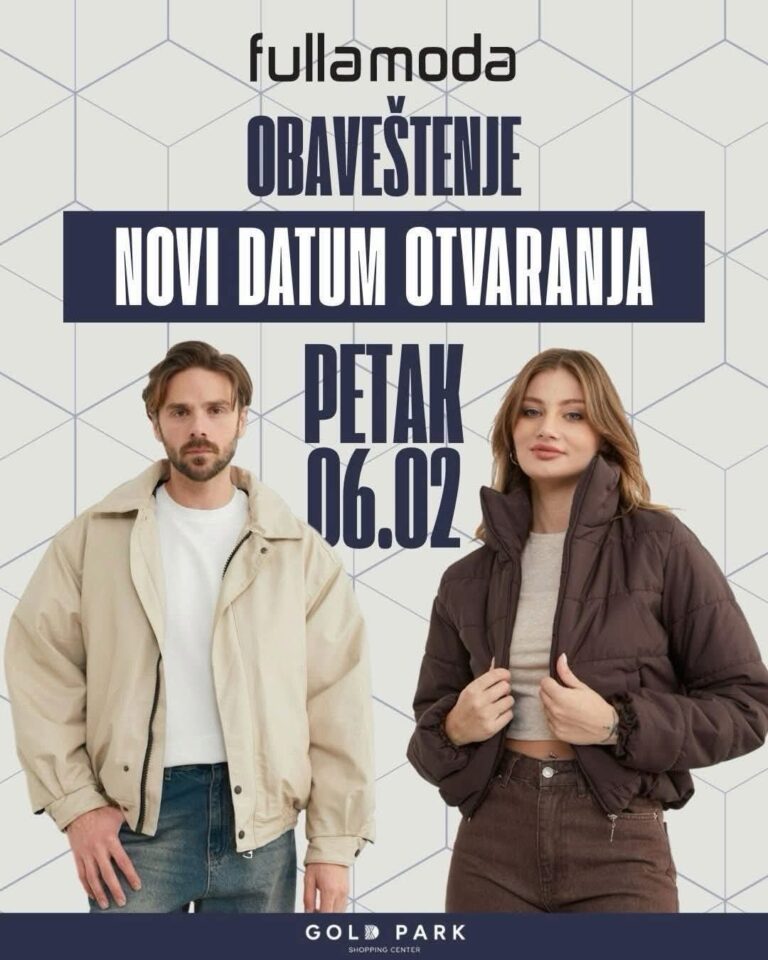 Смедерево добија још једну атрактивну модну дестинацију, Fulla Moda Serbia у петак, 6. фебруара, свечано отвара своју нову продавницу у Gold Park Shopping Centru. Поводом отварања, све посетиоце очекују попусти…
