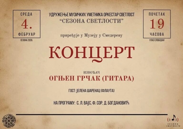 Отварање „Сезоне светлости“ уз концерт Огњена Грчака у Музеју у Смедереву