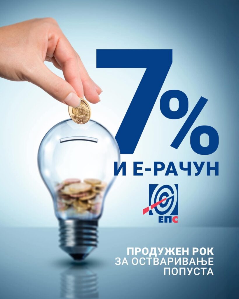 Домаћинства која користе искључиво електронски рачун могу остварити попуст од 7 одсто, уколико обавезе за јануар 2026. године измире у продуженом року. Ова погодност односи се на кориснике који су се определили за дигиталну комуникацију са ЕПС-ом и више не добијају папирне рачуне.