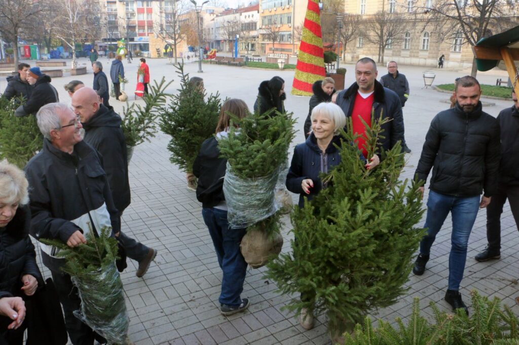 Јавно комунално предузеће „Зеленило и гробља“ организовало је бесплатну поделу новогодишњих јелки са бусеном на Градском тргу.